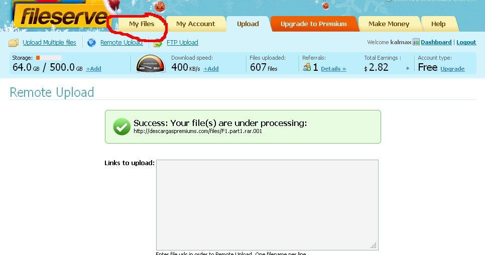 y no da el link de fileserve para que podamos publicarlo en nuestro post